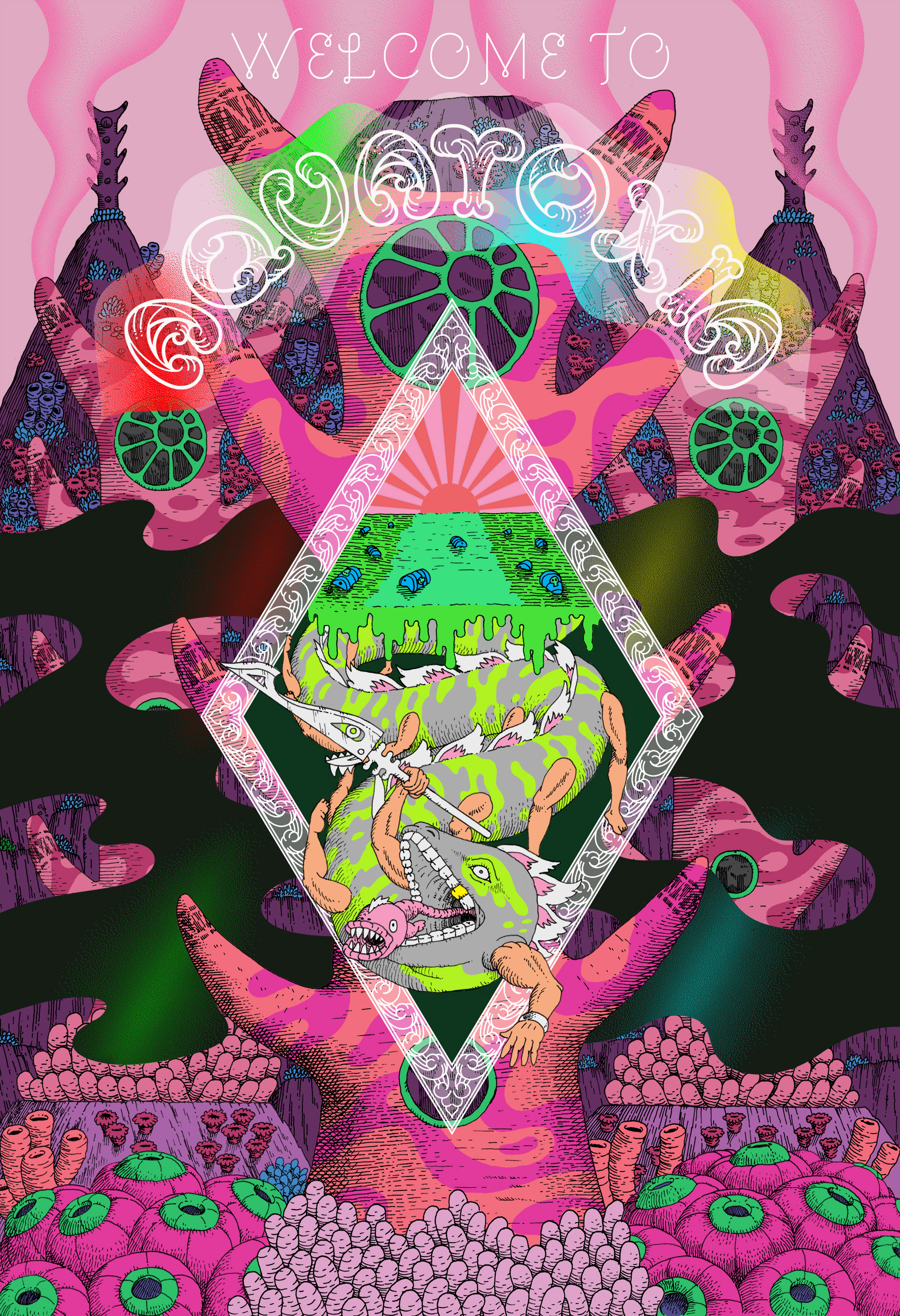 A tourism poster for an imaginary underwater planet.