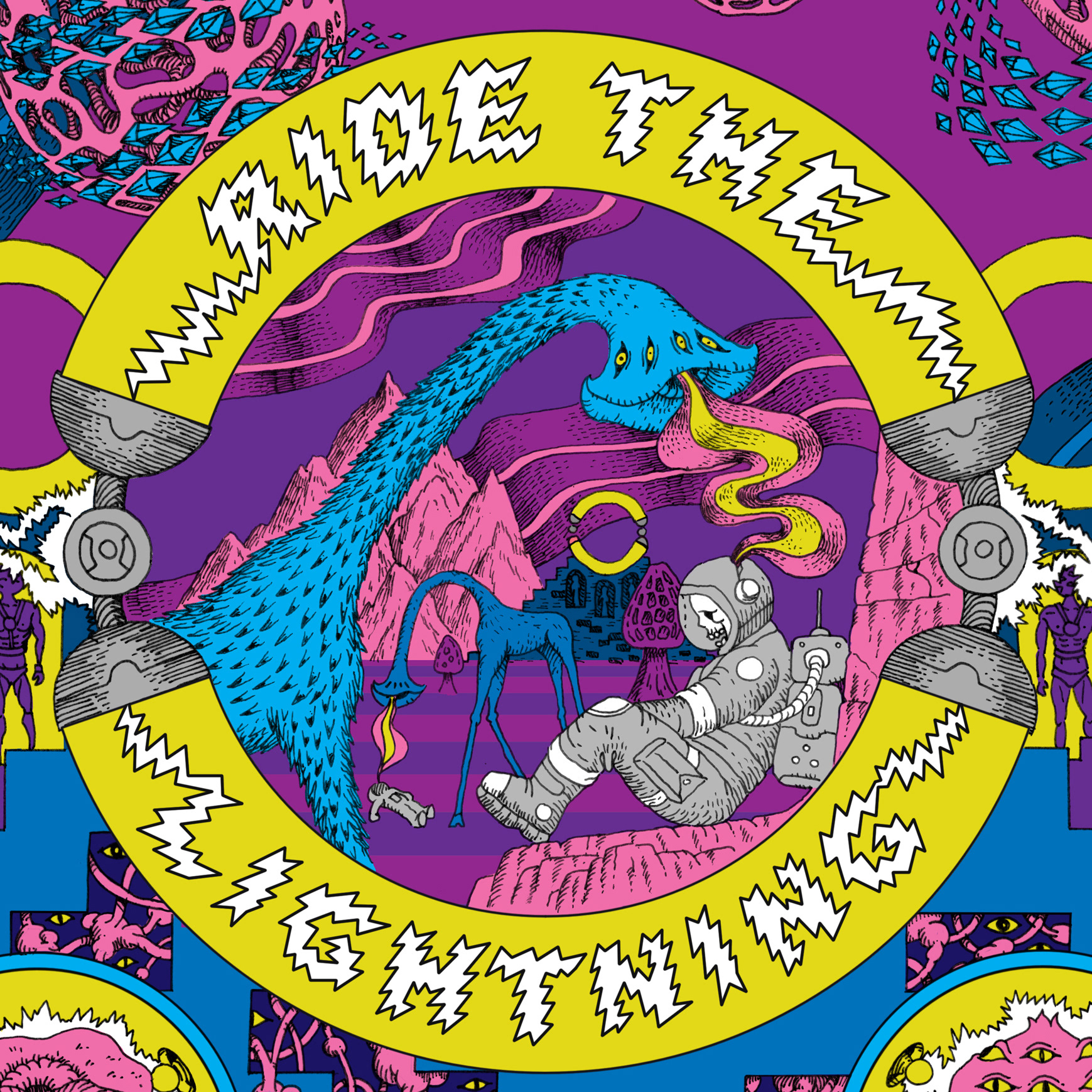 A gig poster for and event at Kobe Arthouse featuring the band 'Lightning Swells Forever'. Influenced by retro sci-fi posters and comic books.
