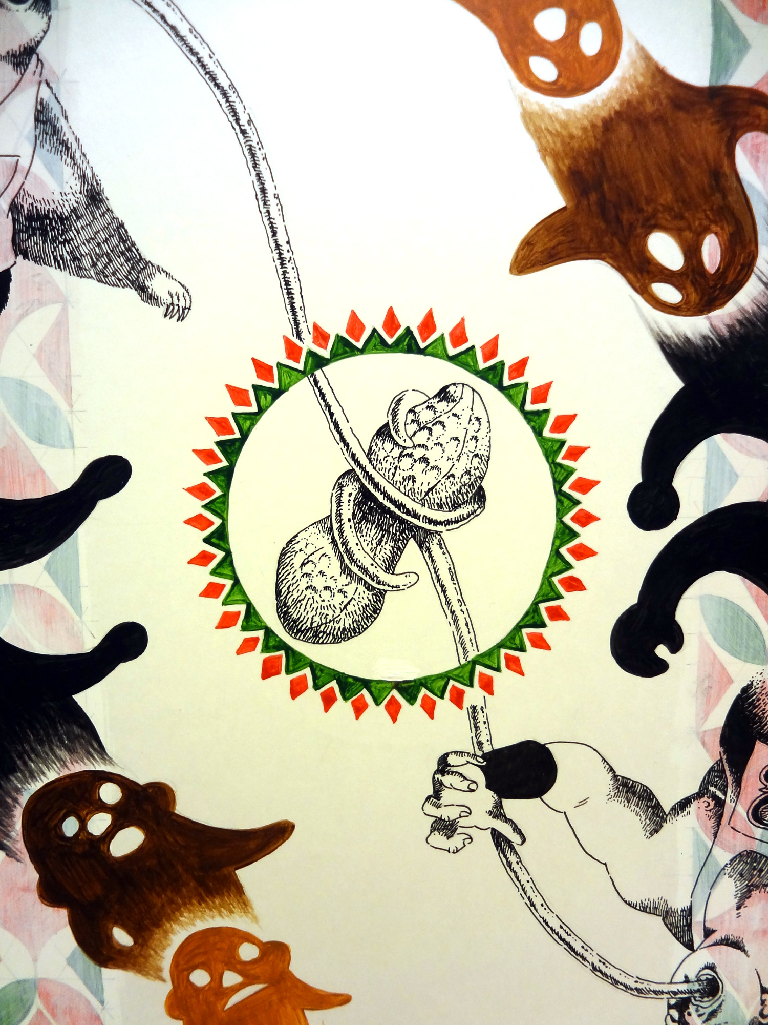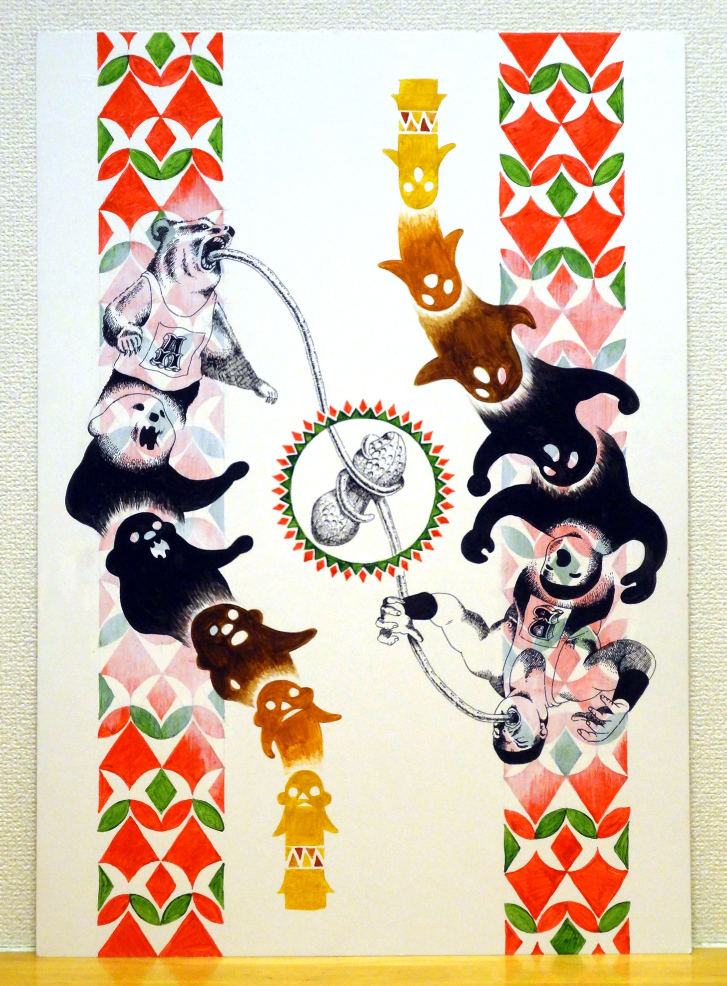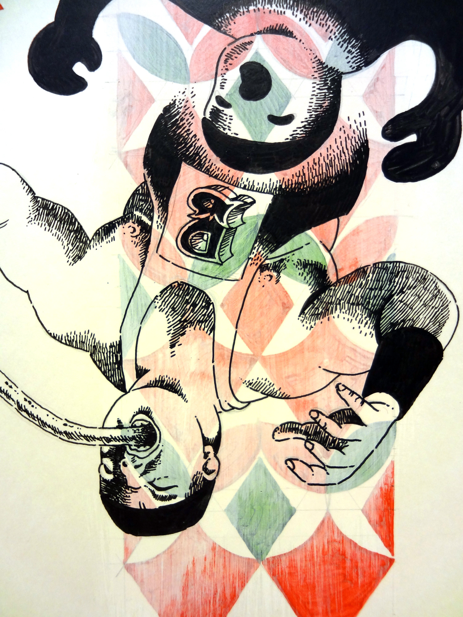 This piece is a slight departure from my usual style, the idea being to move away from the computer and work in freer, more experimental manner. Who will win the challenge?